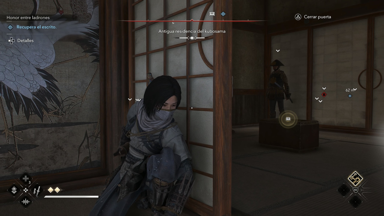 • Naoe, la Shinobi: Su estilo de juego evoca la experiencia tradicional de Assassin’s Creed, con un gran énfasis en el sigilo y la agilidad. Puede escalar paredes, esconderse entre los arbustos y usar diversas herramientas ninja como kunai y bombas de humo para eliminar sigilosamente a sus enemigos o crear distracciones. Su arsenal de armas de corto alcance, que incluye una katana y un cuchillo mortal, también le permite participar en combates cuerpo a cuerpo cuando es necesario.