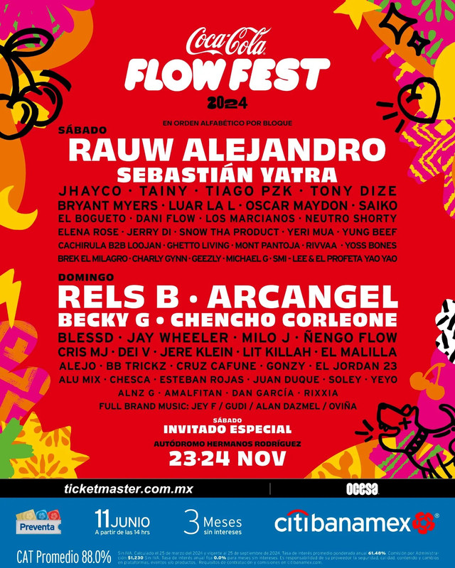 El evento más grande de música urbana y reguetón está de vuelta con su séptima edición, listo para encender los escenarios el próximo 23 y 24 de noviembre. El Coca-Cola Flow Fest promete ser una experiencia inolvidable, reuniendo a los máximos exponentes del género para ofrecer un fin de semana lleno de ritmos, baile y pura energía, la preventa para este gran festival comienza el día 11 de junio.