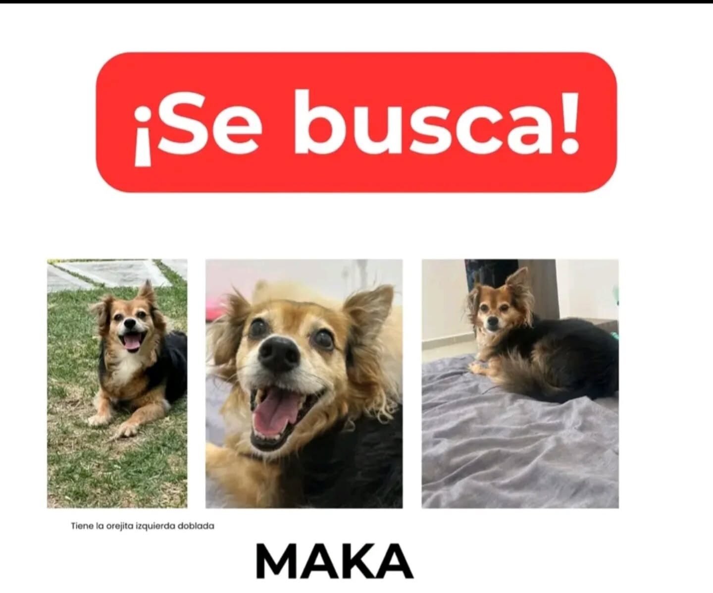 🙏 Si tienes información sobre Maka o la has visto, comunícate por mensaje directo en nuestras redes sociales o al número de contacto.