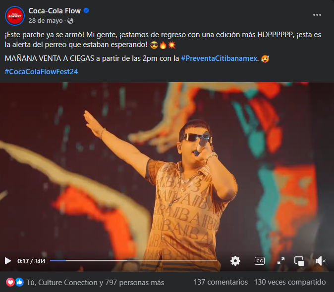 No pierdas la oportunidad de formar parte de este gran evento. La venta a ciegas para el Coca-Cola Flow Fest 2024 es tu oportunidad de garantizar tu entrada antes de que se agoten los boletos. Confía en la calidad que caracteriza a este festival y prepárate para dos días de pura energía.