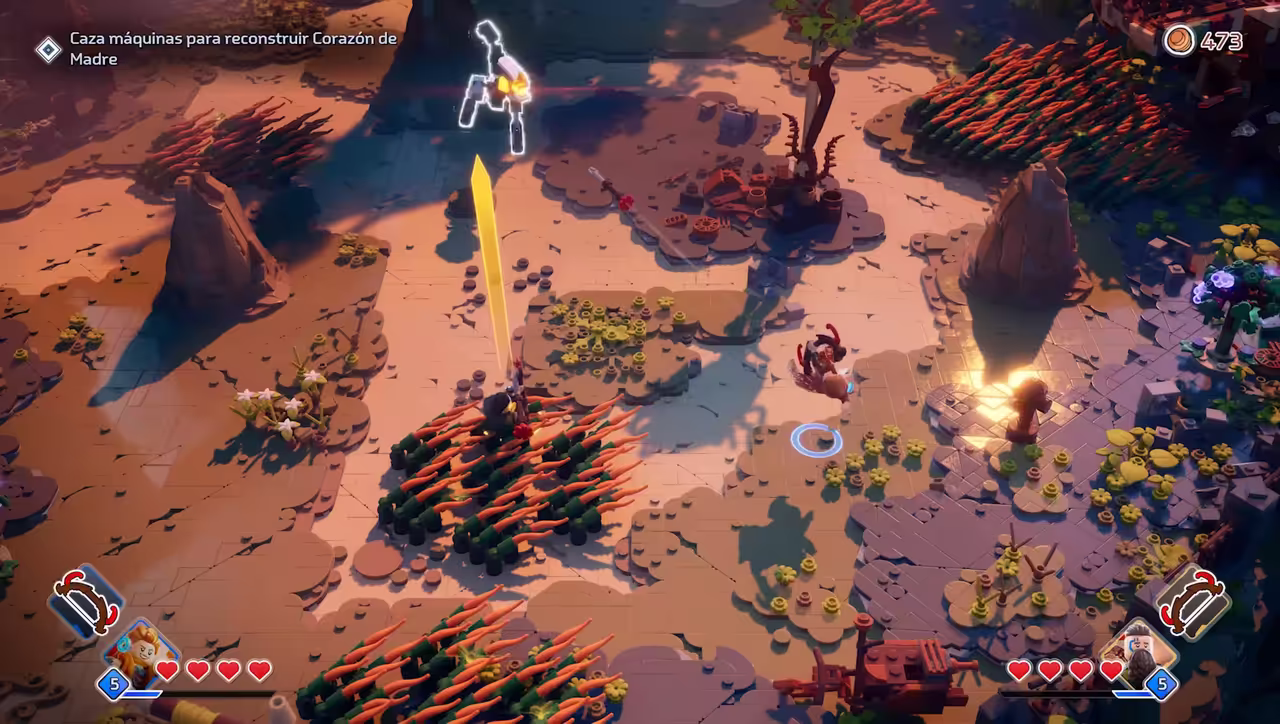 Uno de los aspectos más impresionantes de LEGO Horizon Adventures es la forma en que traslada los impresionantes paisajes postapocalípticos de Horizon Zero Dawn a la icónica estética LEGO. Desde las imponentes bestias mecánicas que vagan por la tierra hasta las ruinas de las antiguas civilizaciones, cada elemento del mundo de Horizon ha sido recreado meticulosamente en formato LEGO, con un nivel de detalle que es realmente asombroso.