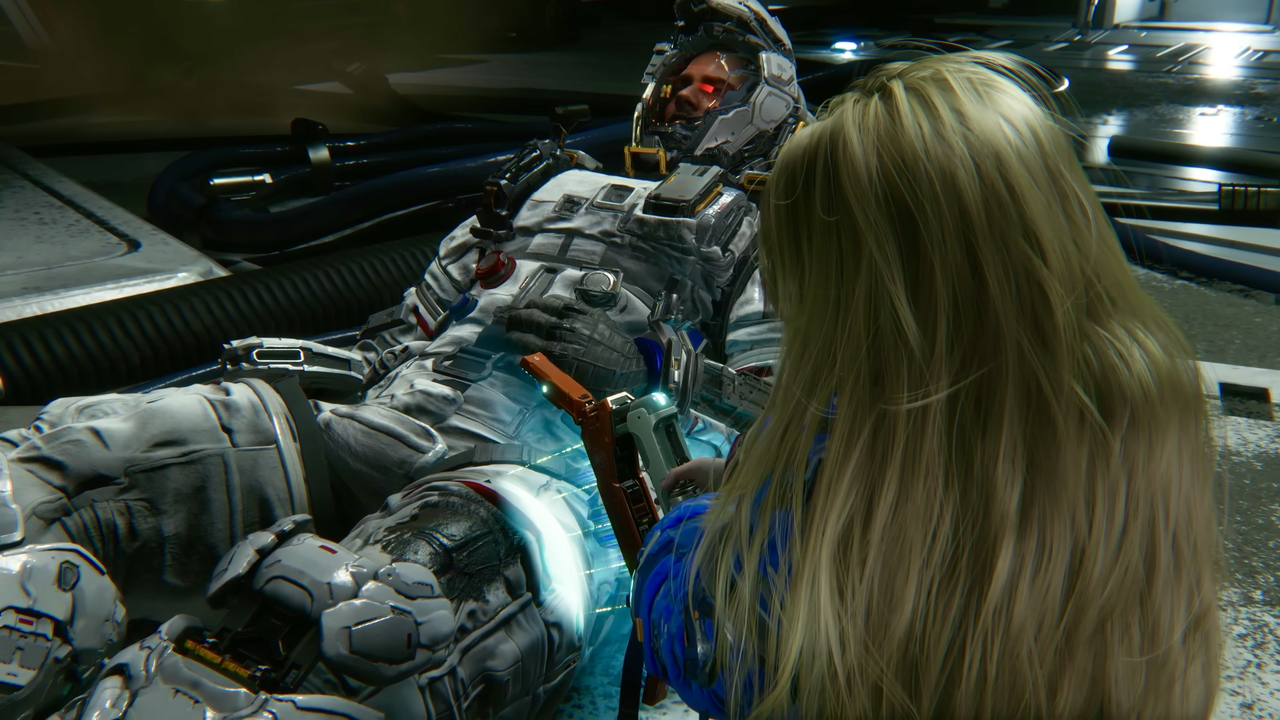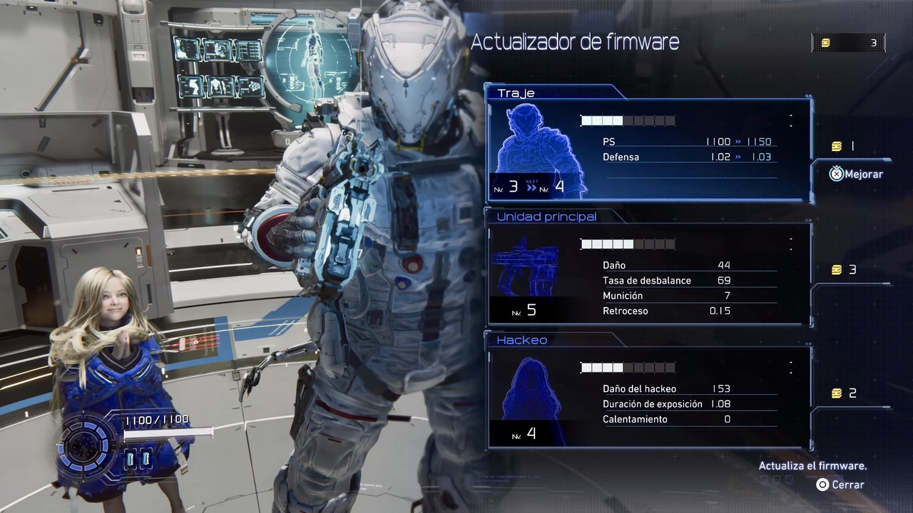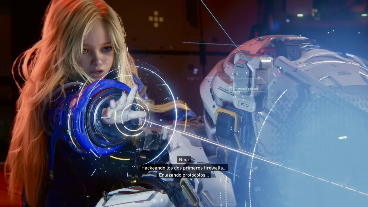 La narrativa de Pragmata se desarrolla a través de cinemáticas y logs que vas encontrando mientras exploras. No es el juego más profundo del mundo, pero tampoco se queda corto.