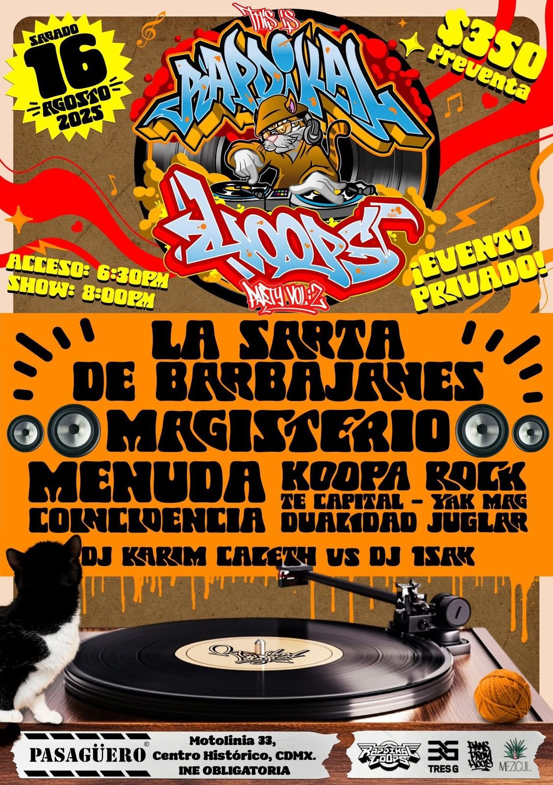 A partir de las 6:30 PM se abrirán las puertas para un evento privado —con acceso exclusivo para mayores de edad y presentación de INE— donde el público podrá disfrutar de un line-up tan sólido como diverso. En tarima estarán Sarta de Barbajanes, Menuda Coincidencia, y el legendario dúo Magisterio (Ximbo & MC Van-T), que llegan con líricas cargadas de fuerza y contenido.